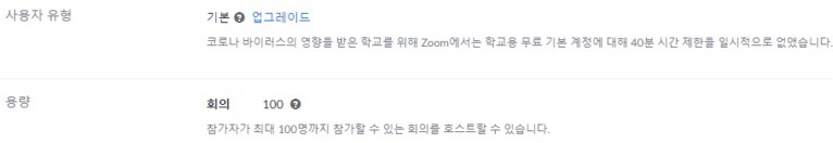 1개의 영상수업 혹은 영상회의를 개설하면 40분 이상 사용이 안된다.