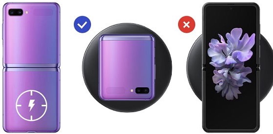 갤럭시 Z 플립은 위아래 접이식 디스플레이로 주머니에 맞게 접을 수 있도록 설계 되어 있어 일반적인 다른 폰들과 충전 위치나 방법이 달라 무선충전기 사용 시 충전이 안된다고 생각하는 경우가 많다.
