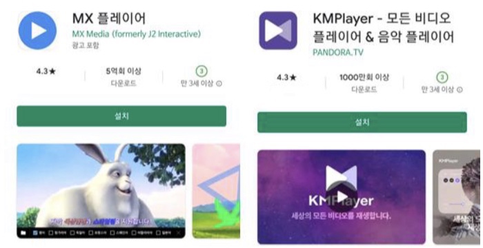 보통 이럴 경우 동영상 플레이어 앱을 설치해서 사용하는 경우가 많은데 주로 MX플레이어나 KM플레이어 등이 사용이 수월하다. (구글플레이스토어와 갤럭시스토어에서 무료 다운로드 가능하다.)