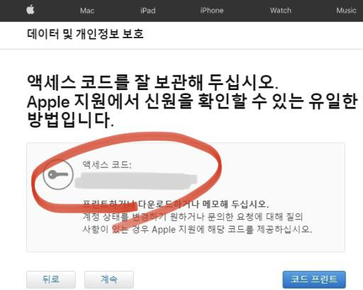그 다음 애플계정, appleid 삭제를 위한 액세스 코드 12자리가 나타나는데