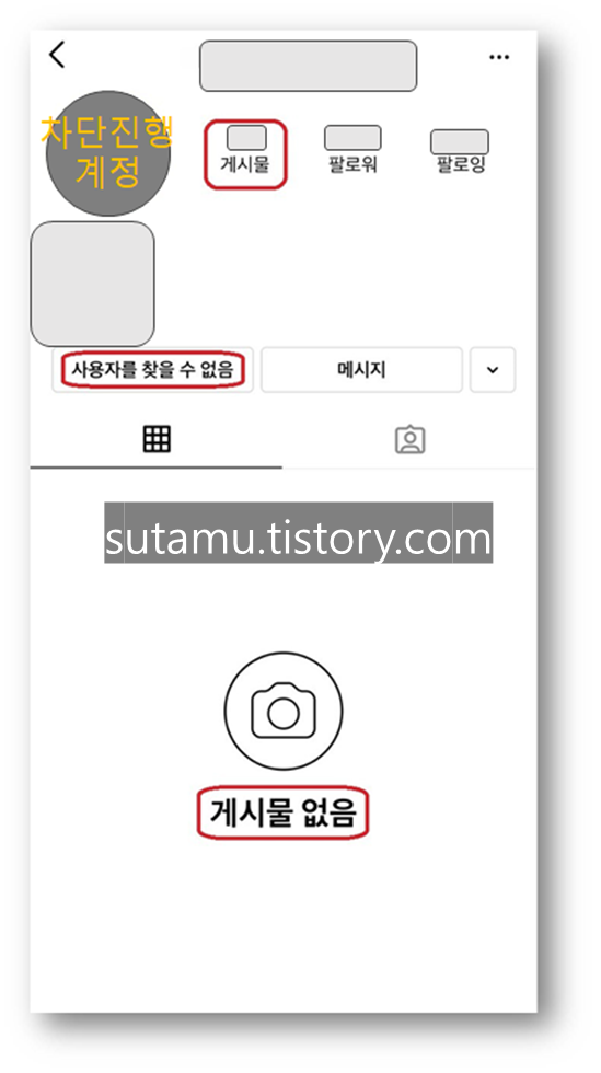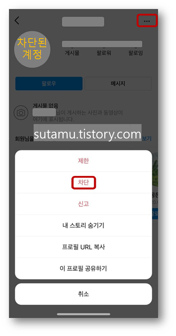 인스타 차단하고자 하는 계정을 "차단된 계정"